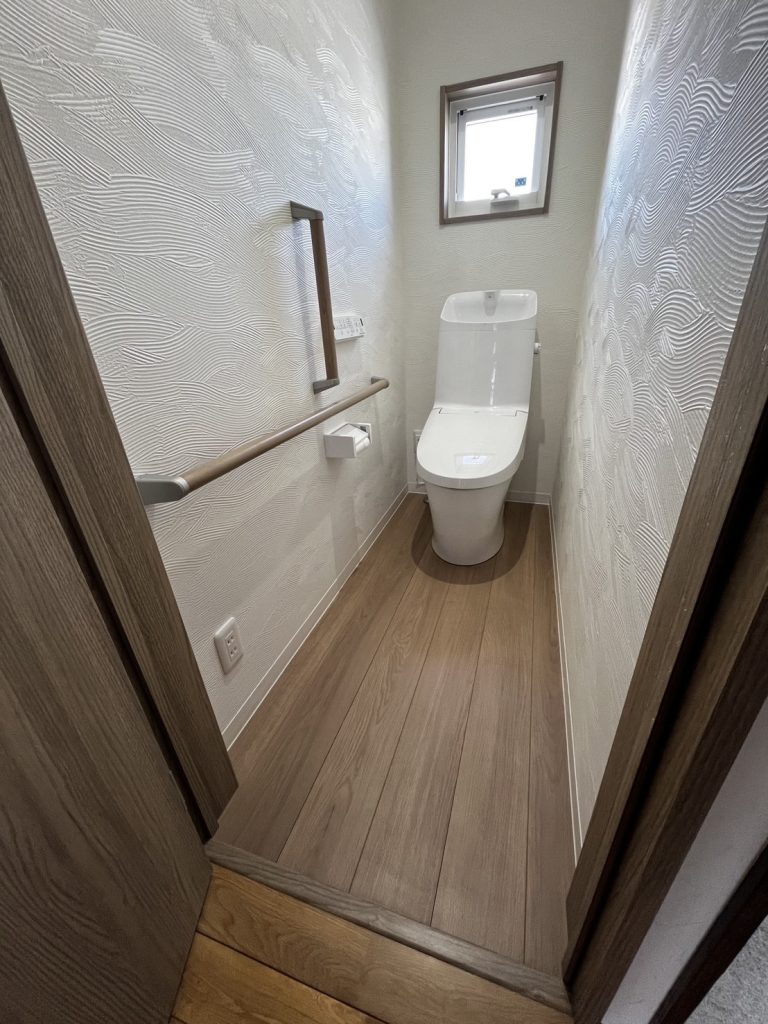 トイレもタイル貼りからクロス貼りにリフォームしました。